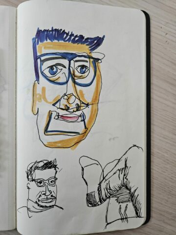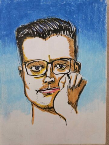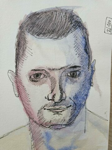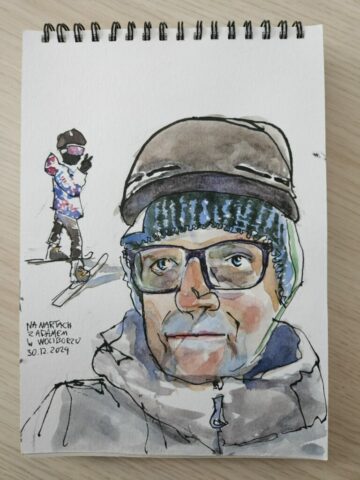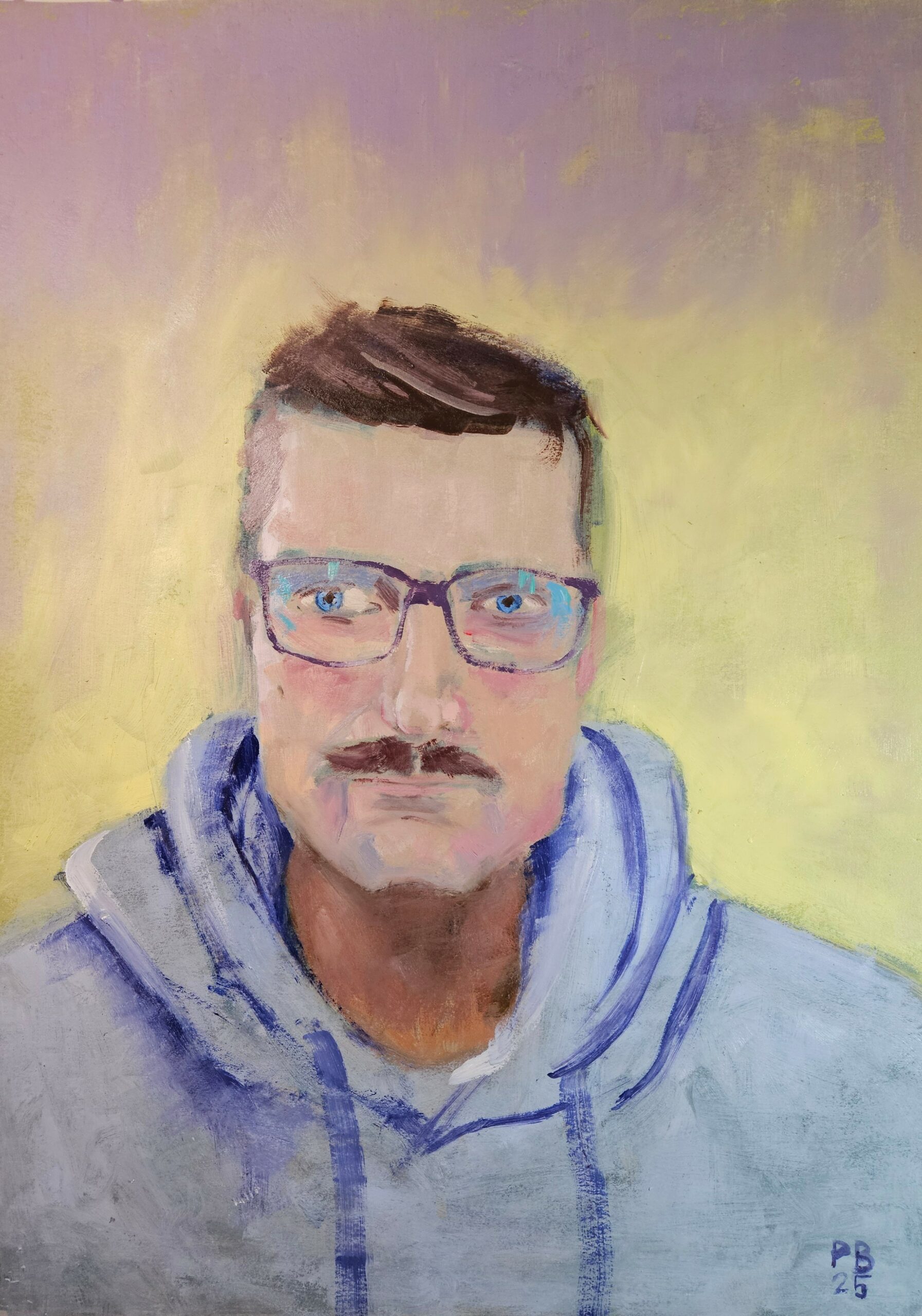 Autoportret z wąsem i siwym włosem Olej na tekturze introligatorskiej 50x70cm Przełom roku zawsze daje mi natchnienie do namalowania autoportretu. Przez lata zmieniała się technika, umiejętności i podejście, ale każdy z poniższych pokazuje kawałek mnie